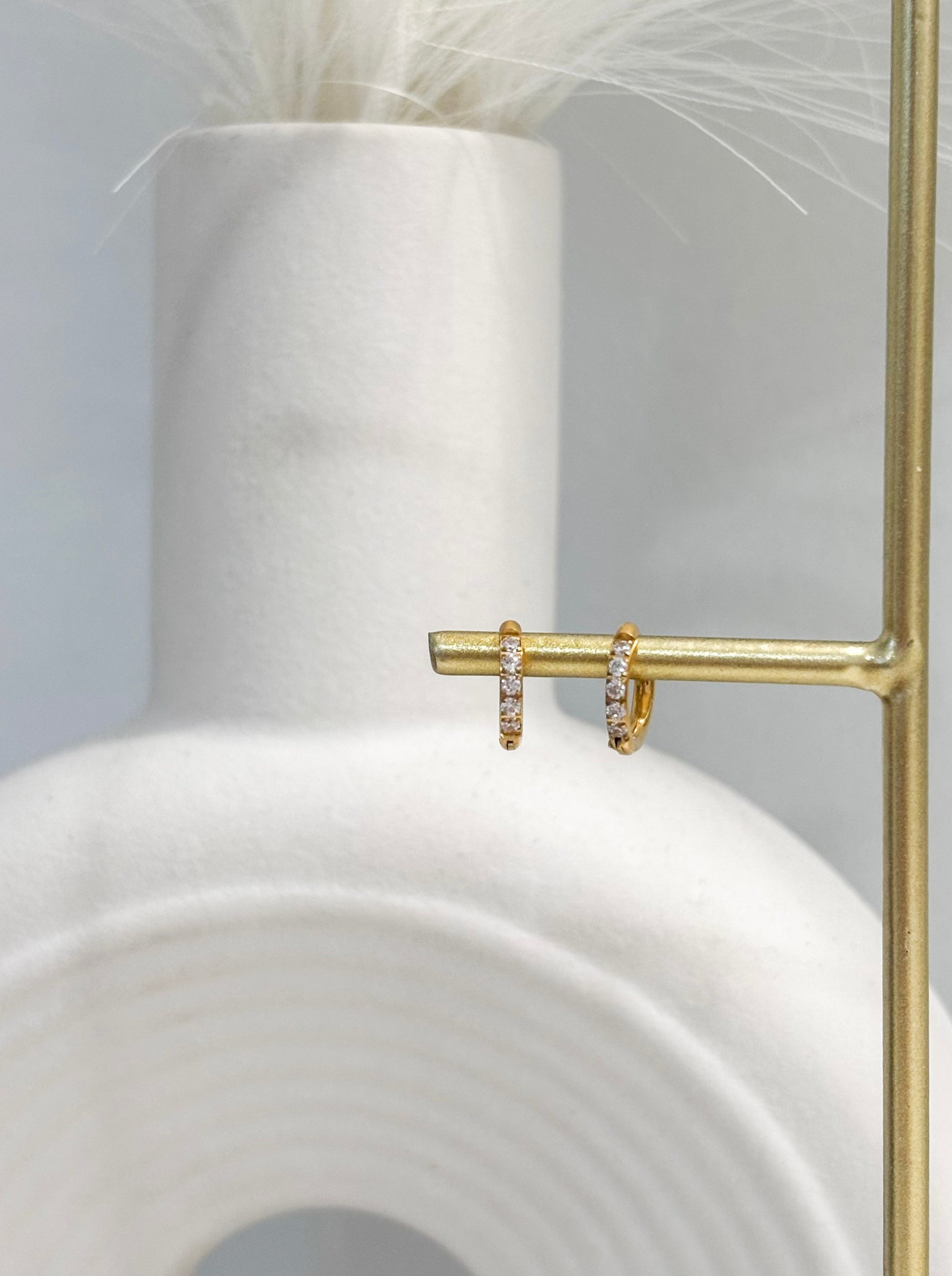 Elegant gold stainless steel hoops adorned with micro pavé zircon stones. A timeless piece perfect for effortless layering or solo wear.